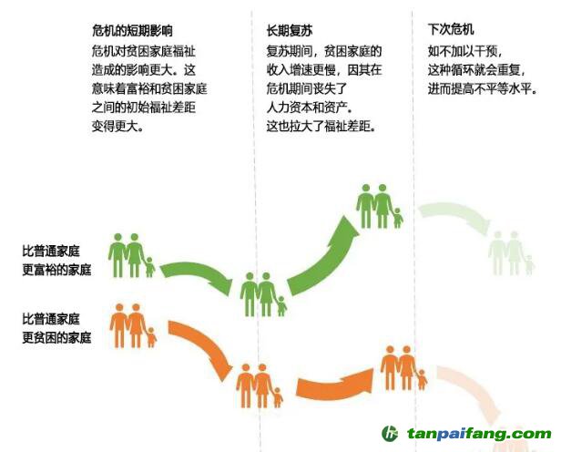 從歷次災(zāi)害中獲得的證據(jù)顯示,最貧困家庭的福祉所受影響不僅更大,其災(zāi)后復(fù)蘇進(jìn)程也更慢(參見圖1)。我們發(fā)現(xiàn),當(dāng)前有三大原因使得我們對這一格局表示關(guān)切。這些原因如得不到解決,這一格局也將在此次疫情危機(jī)中顯現(xiàn)。