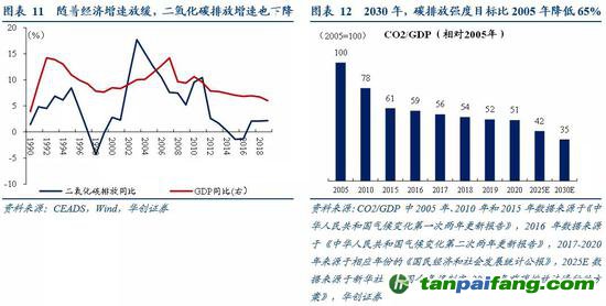 ?。ㄒ唬┛傮w看:未來十年,隨著經(jīng)濟增速中樞繼續(xù)下行,碳排放強度目標(2030年相比2005年碳排放強度降低65%以上)的逐步實現(xiàn),碳排放增速中樞將進一步降低。