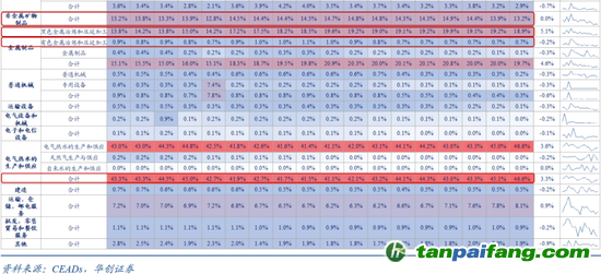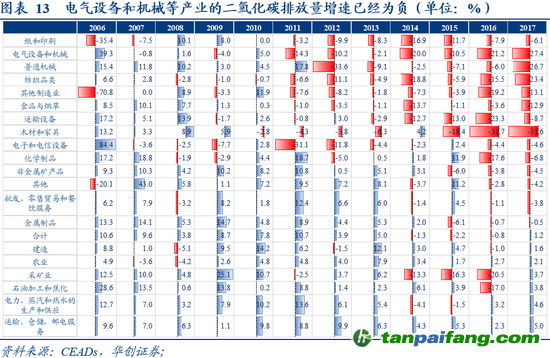 同比增速已經(jīng)為負的產(chǎn)業(yè)包括紙和印刷業(yè)、電氣設備和機械、普通機械、紡織品業(yè)、其他制造業(yè)、食品和煙草、運輸設備、木材和家具、電子和電信設備、化學制品、非金屬礦產(chǎn)品、批發(fā)零售業(yè)等;增速依然較高的是運輸倉儲郵電服務業(yè)、電熱氣水業(yè)、石油加工和焦化和采礦業(yè)等。 本*文@內-容-來-自;中_國_碳^排-放*交-易^網(wǎng) t an pa i fa ng . c om