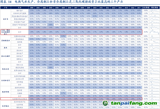 ?。ǘ┓中袠I(yè)看:我國主要的二氧化碳排放來源是高耗能行業(yè),尤其是電熱氣水生產(chǎn)業(yè)。據(jù)CEADs數(shù)據(jù)統(tǒng)計,二氧化碳排放的主要來源是六大高耗能行業(yè)。其中電熱氣水生產(chǎn)占比最高,2017年占總排放量的46.6%,較2000年占比還增加3.3個百分點;黑色金屬冶煉和壓延加工業(yè),2017年占比在18.9%,且較2000年占比增加了 5.1個百分點;其他四個高耗能行業(yè)排放2017年合計占比是18.1%,較2000年占比降低了0.9個百分點。 內/容/來/自:中-國-碳-排-放*交…易-網(wǎng)-tan pai fang . com