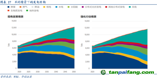 第一、通過明確的量化指標與政策確保“所有新建發(fā)電裝機都來自零碳來源”的目標的完成。要實現(xiàn)“所有新建發(fā)電裝機都來自零碳來源”,則風電和光伏裝機都以50-60GW速度增長,到2030年各自達到800GW以上,核電和水電也繼續(xù)增長,到2030年分別達到120GW左右和440GW,除已經(jīng)在建的燃煤電廠外,停止新增煤電投資。為了確??稍偕茉吹目焖僭鲩L,可以通過多樣的采購形式繼續(xù)為可再生能源發(fā)電企業(yè)的大部分發(fā)電量提供長期穩(wěn)定的價格保障。 禸*嫆唻@洎:狆國湠棑倣茭昜蛧 τāńpāīfāńɡ.cōm