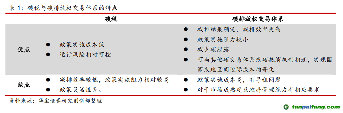 正是由于這種區(qū)別,兩種手段具有不同的特點。開征碳稅更適用于管控小微排放端,碳排放權(quán)交易體系則適用于管控排放量較大的企業(yè)或行業(yè)。這兩種政策是可以結(jié)合使用的。 本`文@內(nèi)-容-來-自;中_國_碳排0放_交-易=網(wǎng) t an pa ifa ng . c om