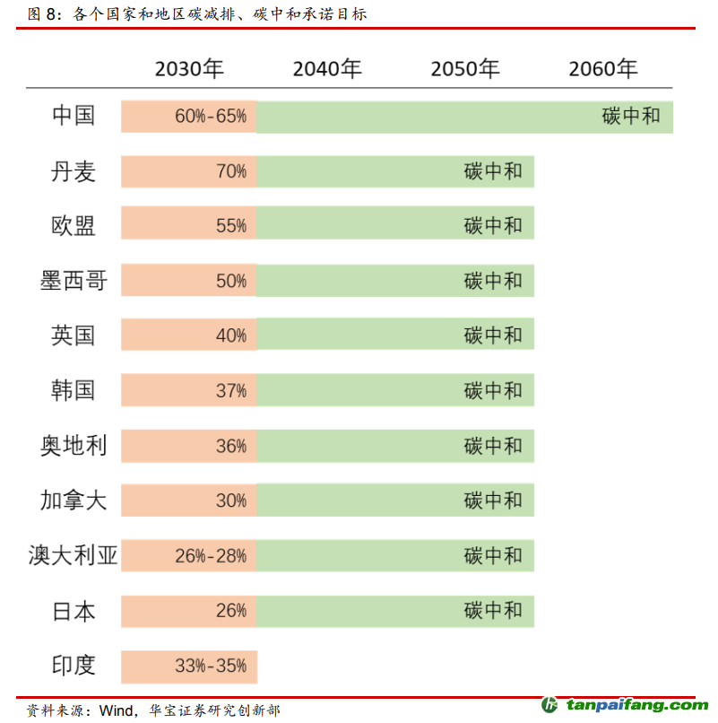各個國家和地區(qū)碳減排、碳中和承諾目標: