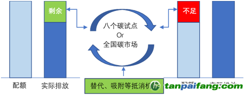 碳中和的重要手段。國家鼓勵(lì)企業(yè)事業(yè)單位實(shí)施可再生能源、林業(yè)、甲烷利用等項(xiàng)目實(shí)現(xiàn)溫室氣體的替代、吸附或減少,經(jīng)過核實(shí)并登記的溫室氣體削減可用于抵消一定比例的碳排放配額清繳。與此同時(shí),《暫行條例》明晰了政府部門和審查機(jī)構(gòu)的職能和責(zé)任,為配額發(fā)放建立了可執(zhí)行的標(biāo)準(zhǔn)和獎(jiǎng)懲措施。