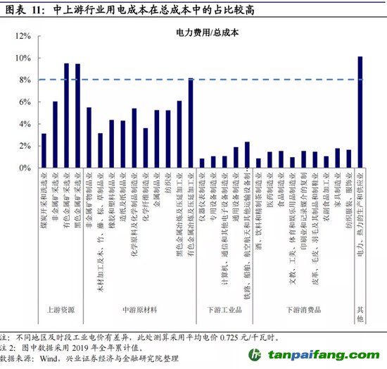 從上下游行業(yè)層面看,上中游行業(yè)生產(chǎn)使用的電力較多,受電價上漲影響較大。若電價上漲,上下游行業(yè)之間可能面臨價格傳導(dǎo)風(fēng)險。 本+文內(nèi).容.來.自:中`國`碳`排*放*交*易^網(wǎng) ta np ai fan g.com