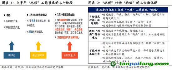 政治局會議提出糾正運動式“減碳”,“雙碳”工作進入更加有序推進階段。2021年上半年,十四五”開局之際“雙碳”工作積極推進,但也存在“起跑沖刺”現(xiàn)象。730政治局會議提出糾正運動式“減碳”,先立后破,也意味著“雙碳”工作從“起跑沖刺”進入到“統(tǒng)籌有序”推進階段。(詳見2021年7月30日報告《著眼中長期,先立而后破-7月政治局會議點評》) 內(nèi).容.來.自:中`國`碳#排*放*交*易^網(wǎng) t a np ai f an g.com