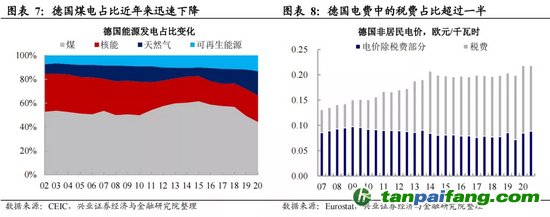 從國際經(jīng)驗看,德國在能源結(jié)構(gòu)轉(zhuǎn)型過程中電價經(jīng)歷了上漲。德國早在1990年就提出了可再生能源補貼政策,進入新世紀(jì)以來又先后出臺了可再生能源發(fā)展相關(guān)的明細(xì)規(guī)定、綱要等。進入新世紀(jì)以來,德國可再生能源發(fā)電占比持續(xù)上升,當(dāng)前已經(jīng)占到總發(fā)電比重的15%左右,近年來德國煤電占比也出現(xiàn)明顯下降,已從2015年的61%下降到了2020年的44%,不到總發(fā)電量一半。在德國長達(dá)30年的能源結(jié)構(gòu)轉(zhuǎn)型歷程中,電價也一路上漲,其中相關(guān)稅費上漲是主要驅(qū)動,而稅費主要部分是“可再生能源附加費”。