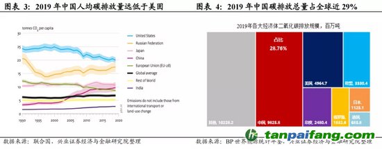 中國人均碳排放不高,但碳排放總量較大,“雙碳”目標(biāo)任重道遠(yuǎn)。2019年,中國人均碳排放量遠(yuǎn)低于美國,但碳排放總量達(dá)到98.26億噸,占全球比例為28.76%,是全球最大的排碳經(jīng)濟體,中國實現(xiàn)“碳中和”目標(biāo)任重而道遠(yuǎn),是一個“久久為功”的過程。(詳見2021年3月3日報告《“碳中和”能否驅(qū)動新一輪投資率上行?》)