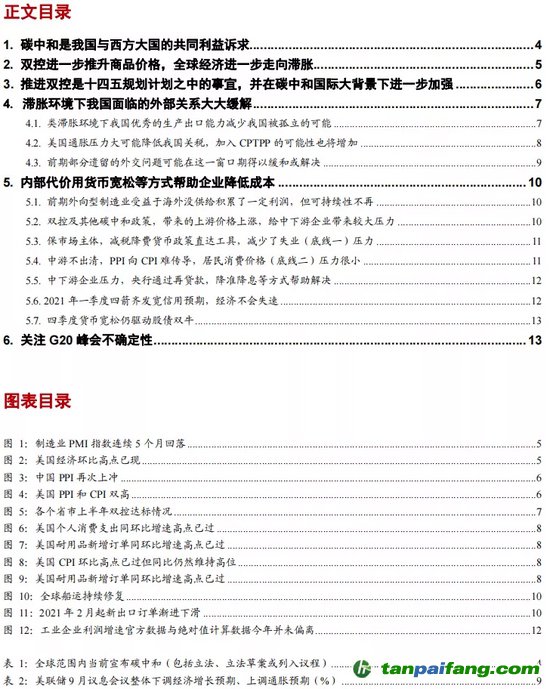 我們認(rèn)為,碳中和是我國(guó)與西方大國(guó)的共同利益訴求,推進(jìn)雙控是十四五規(guī)劃計(jì)劃之中的事宜,并在碳中和國(guó)際大背景下進(jìn)一步加強(qiáng)。雙控將進(jìn)一步推升商品價(jià)格,全球經(jīng)濟(jì)進(jìn)一步走向滯脹,而我國(guó)是全球最大的制造業(yè)國(guó)家和商品出口國(guó),滯脹環(huán)境下我國(guó)面臨的外部關(guān)系大大緩解。未來(lái)需要關(guān)注G20峰會(huì)關(guān)于碳中和以及全球經(jīng)濟(jì)協(xié)同面對(duì)滯脹問(wèn)題的進(jìn)一步討論。 內(nèi).容.來(lái).自:中`國(guó)`碳#排*放*交*易^網(wǎng) t a np ai f an g.com