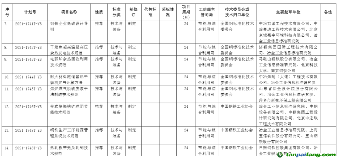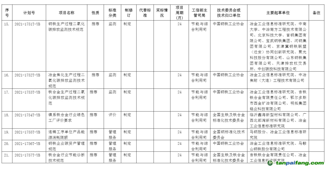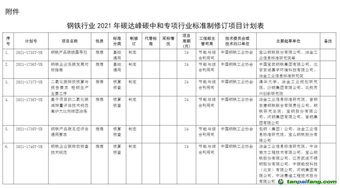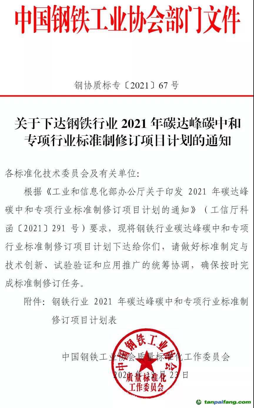 近日,中鋼協(xié)發(fā)布鋼鐵行業(yè)2021年碳達(dá)峰碳中和專項行業(yè)標(biāo)準(zhǔn)制修訂項目計劃。