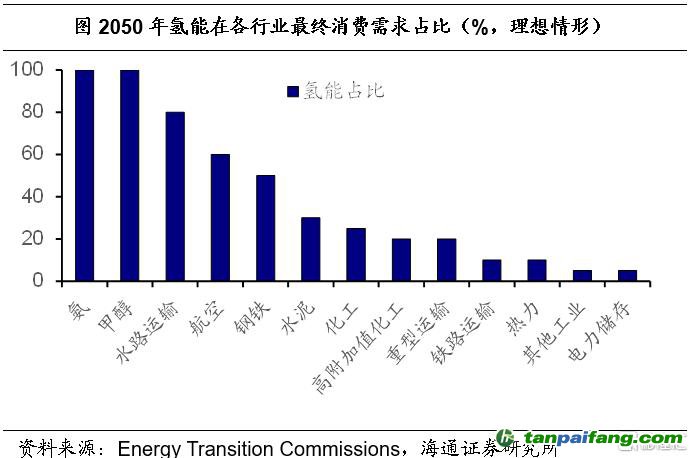 其中,在運(yùn)輸方面,氫氣主要用于制造燃料電池供電動(dòng)汽車使用;而在工業(yè)領(lǐng)域,主要是作為工業(yè)或能源原料;在發(fā)電領(lǐng)域,氫是儲(chǔ)存可再生能源的主要選擇之一,氫和氨可用于燃?xì)廨啓C(jī)以提高電力系統(tǒng)靈活性;在熱力領(lǐng)域,氫氣可以混合到現(xiàn)有天然氣網(wǎng)絡(luò)中,未來也可以在氫氣鍋爐或燃料電池中直接使用。 本+文`內(nèi)/容/來/自:中-國(guó)-碳-排-放-網(wǎng)-tan pai fang . com