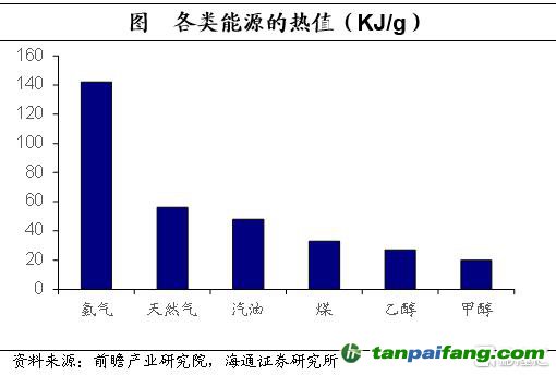 從應(yīng)用端來看,氫能的優(yōu)勢(shì)在于高效、應(yīng)用廣泛。一是高效,相對(duì)于其他常見能源,氫氣燃燒的熱值更高,能達(dá)到142KJ/g,遠(yuǎn)高于其他能源,從而能夠提升效率。二是氫氣的應(yīng)用廣泛,既可以用作燃料電池發(fā)電,應(yīng)用于汽車,船舶和航空領(lǐng)域,也可以單獨(dú)作為燃料氣體或化工原料進(jìn)入生產(chǎn),同時(shí)還可以在天然氣管道中摻氫燃燒,應(yīng)用于建筑供暖等。目前在已經(jīng)規(guī)模化應(yīng)用的能源中,僅有石油能具備供熱、供電、交通燃料等多種功能,而氫氣無疑又是一種具有多種能源特性、適用多種場(chǎng)景的優(yōu)質(zhì)能源。 內(nèi)-容-來-自;中_國(guó)_碳_0排放¥交-易=網(wǎng) t an pa i fa ng . c om