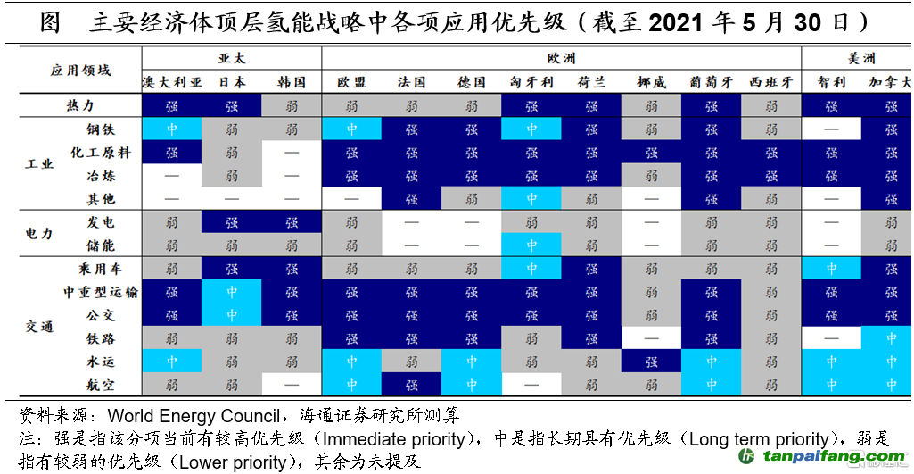 而在當(dāng)前全球各主要經(jīng)濟(jì)體提出的頂層氫能戰(zhàn)略中,最受關(guān)注的應(yīng)用領(lǐng)域是化工、冶煉、中重型運(yùn)輸和公交。這說明,這些是在當(dāng)前最具有緊迫性,也更具有可行性的技術(shù)應(yīng)用領(lǐng)域,也是未來我國(guó)在氫能綜合應(yīng)用中更應(yīng)關(guān)注和突破的方向。
