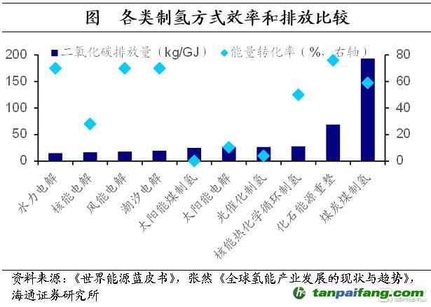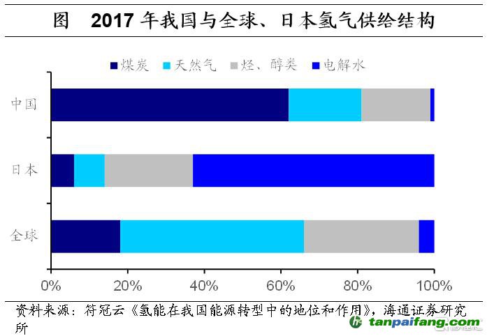 中國(guó)當(dāng)前煤化工行業(yè)發(fā)展較為成熟,2016年我國(guó)煤制氫占比高達(dá)62%,相比來看,全球水平氫氣供給中僅有18%為煤制氫,而在氫能產(chǎn)業(yè)最為發(fā)達(dá)的日本,其煤制氫的比重僅為6%,電解水制取的綠氫占比高達(dá)63%。在以煤炭作為制氫主要來源的情況下,碳排放水平相比直接使用煤炭所差無幾,無法達(dá)到低碳的要求,所以當(dāng)前我們面臨的一個(gè)難點(diǎn)是需要加大研發(fā)和應(yīng)用綠氫制造技術(shù)的比例。 內(nèi)/容/來/自:中-國(guó)/碳-排*放^交%易#網(wǎng)-tan p a i fang . com