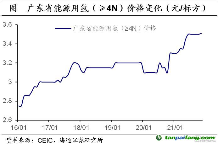 二是制取、儲(chǔ)運(yùn)技術(shù)薄弱,綠氫價(jià)格短期或?qū)⑤^高。從縱向比較上看,我國(guó)僅有廣東省公布了自2016年以來能源用氫的價(jià)格,可以看到近年來一直保持上漲的趨勢(shì)。從橫向比較上看,2021年上半年,德國(guó)氫氣價(jià)格為74.4元/公斤,美國(guó)為106.35元/公斤,日本為70元/公斤,而中國(guó)僅為60-70元/公斤。 本/文-內(nèi)/容/來/自:中-國(guó)-碳-排-放-網(wǎng)-tan pai fang . com