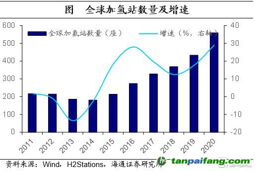 而氫燃料汽車的廣泛應(yīng)用,還需要基礎(chǔ)設(shè)施,如加氫站的配套建設(shè)。截至2020年底,全球共建成加氫站約544座,其中我國(guó)128座,占比約為23.5%。根據(jù)《中國(guó)氫能與燃料電池白皮書(2019)》預(yù)測(cè),我國(guó)加氫站數(shù)量在2035年將達(dá)到1500座,在2050年將達(dá)到10000座以上,為實(shí)現(xiàn)這一目標(biāo),加氫站數(shù)量的年均增速達(dá)15.6%。而根據(jù)香橙研究會(huì)統(tǒng)計(jì)的情況,當(dāng)前我國(guó)加氫站建設(shè)的速度在全球領(lǐng)先,在建數(shù)量遠(yuǎn)超其他國(guó)家和地區(qū),可以預(yù)見在近期,我國(guó)將繼續(xù)推進(jìn)氫能基礎(chǔ)設(shè)施領(lǐng)域建設(shè)。 本*文`內(nèi)/容/來/自:中-國(guó)-碳^排-放“交|易^網(wǎng)-tan pai fang . c o m