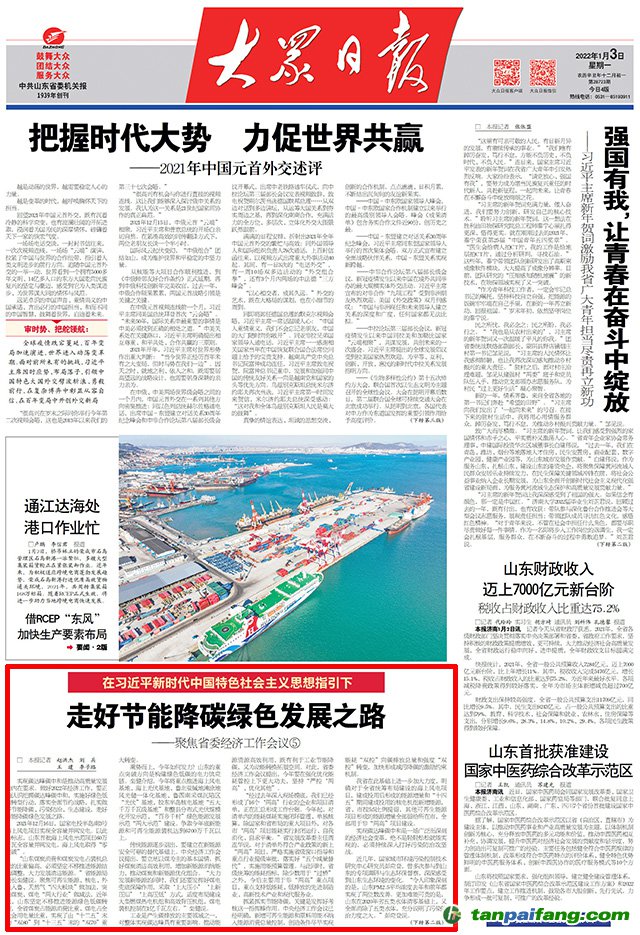 如何理解今年“穩(wěn)中向好、進(jìn)中提質(zhì)”的發(fā)展態(tài)勢(shì),如何看待明年“穩(wěn)字當(dāng)頭、穩(wěn)中求進(jìn)”的發(fā)展基調(diào)?大眾日?qǐng)?bào)推出“聚焦省委經(jīng)濟(jì)工作會(huì)議”系列深度解讀文章,已刊發(fā)《穩(wěn)中向好、進(jìn)中提質(zhì),怎么看?》《穩(wěn)中求進(jìn),怎么穩(wěn)?如何進(jìn)?》《“十大行動(dòng)”擴(kuò)需求穩(wěn)增長(zhǎng)》《決勝動(dòng)能轉(zhuǎn)換“突破之年”》。今日刊發(fā)《走好節(jié)能降碳綠色發(fā)展之路》,敬請(qǐng)關(guān)注。 本文+內(nèi)-容-來(lái)-自;中^國(guó)_碳+排.放_(tái)交^易=網(wǎng) t a n pa ifa ng .c om