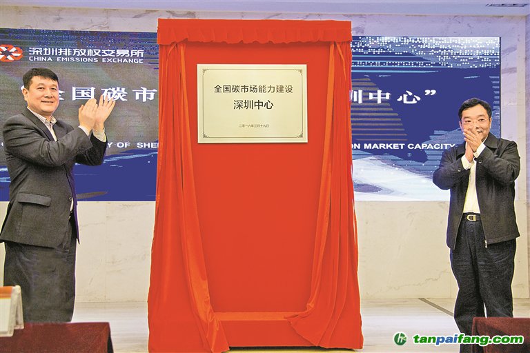 ▲2016年3月19日,“全國(guó)碳市場(chǎng)能力建設(shè)深圳中心”順利揭牌。時(shí)任國(guó)家發(fā)改委應(yīng)對(duì)氣候變化司副司長(zhǎng)蔣兆理、時(shí)任深圳市副市長(zhǎng)徐安良出席揭牌儀式。 深圳排放權(quán)交易所供圖