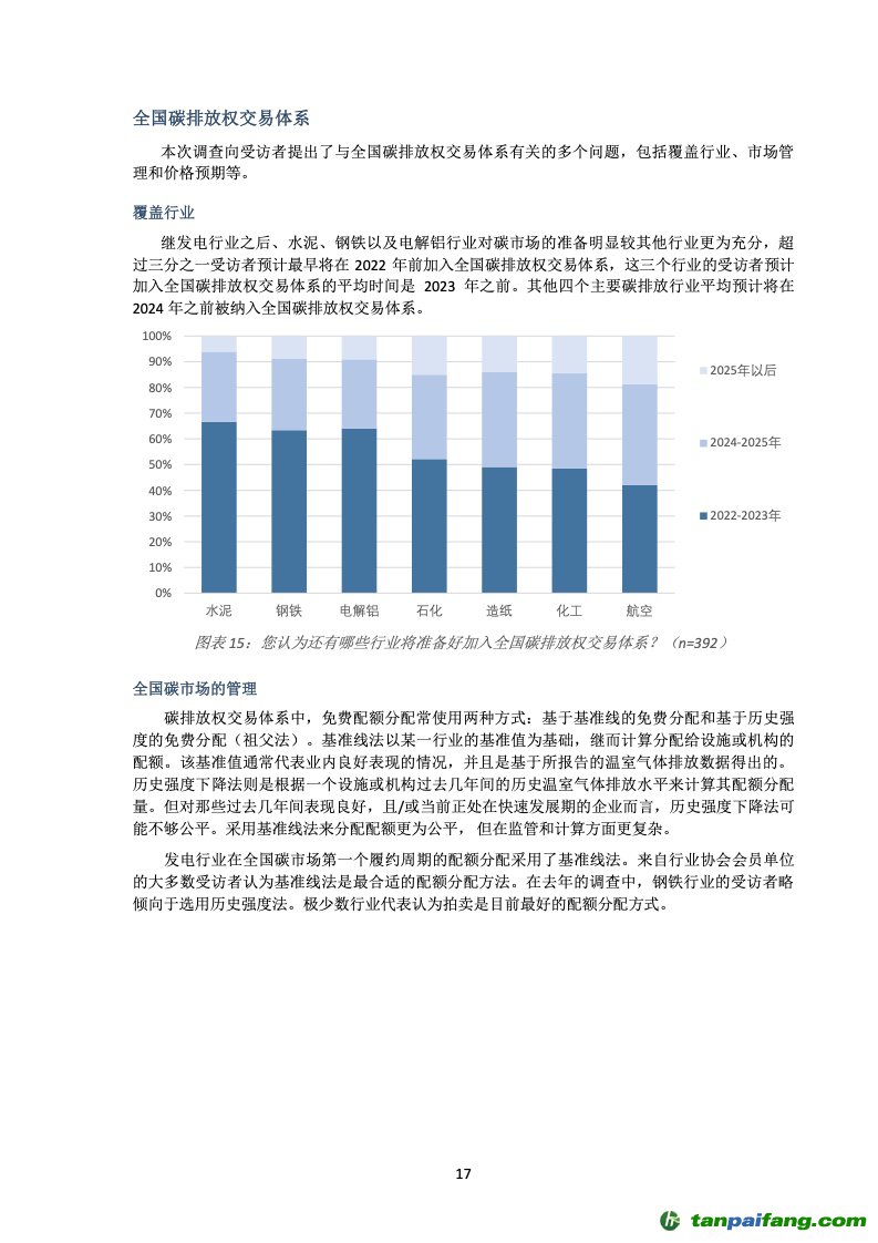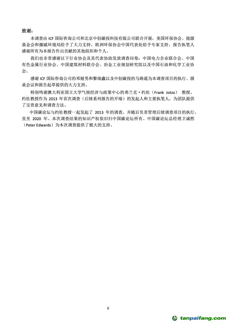 本年度碳價(jià)調(diào)查報(bào)告繼續(xù)由美國環(huán)保協(xié)會、能源基金會及挪威環(huán)境管理局提供資金支持,ICF 國際咨詢公司聯(lián)合北京中創(chuàng)碳投科技有限公司執(zhí)行,并得到了相關(guān)行業(yè)協(xié)會、電力集團(tuán)以及行業(yè)同仁的大力支持。 內(nèi).容.來.自:中`國`碳#排*放*交*易^網(wǎng) t a np ai f an g.com
