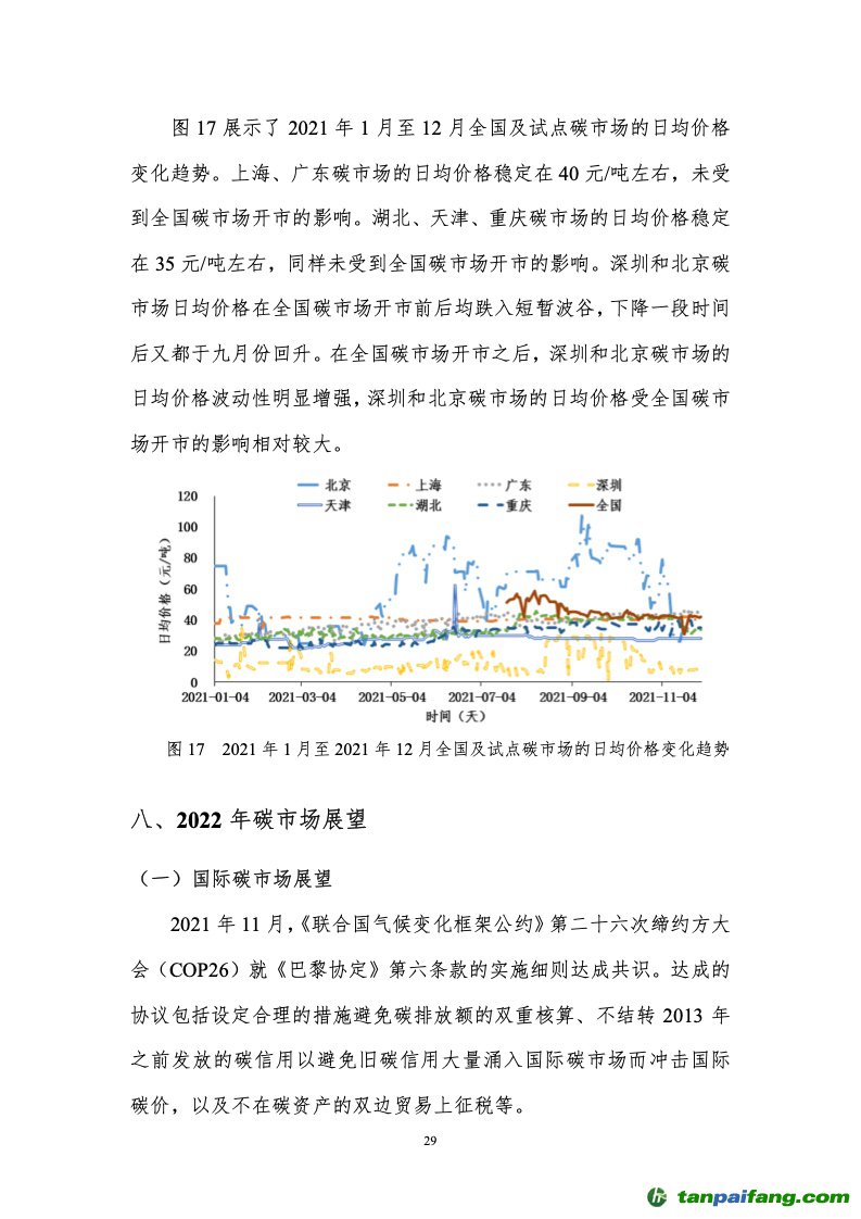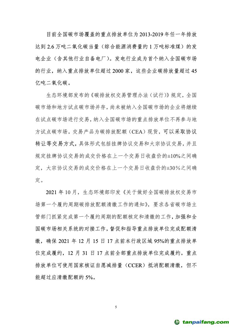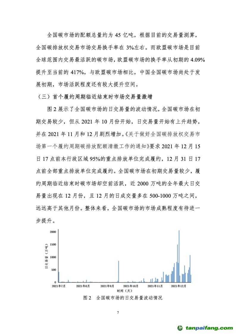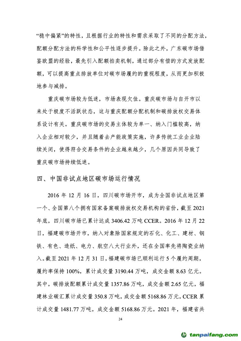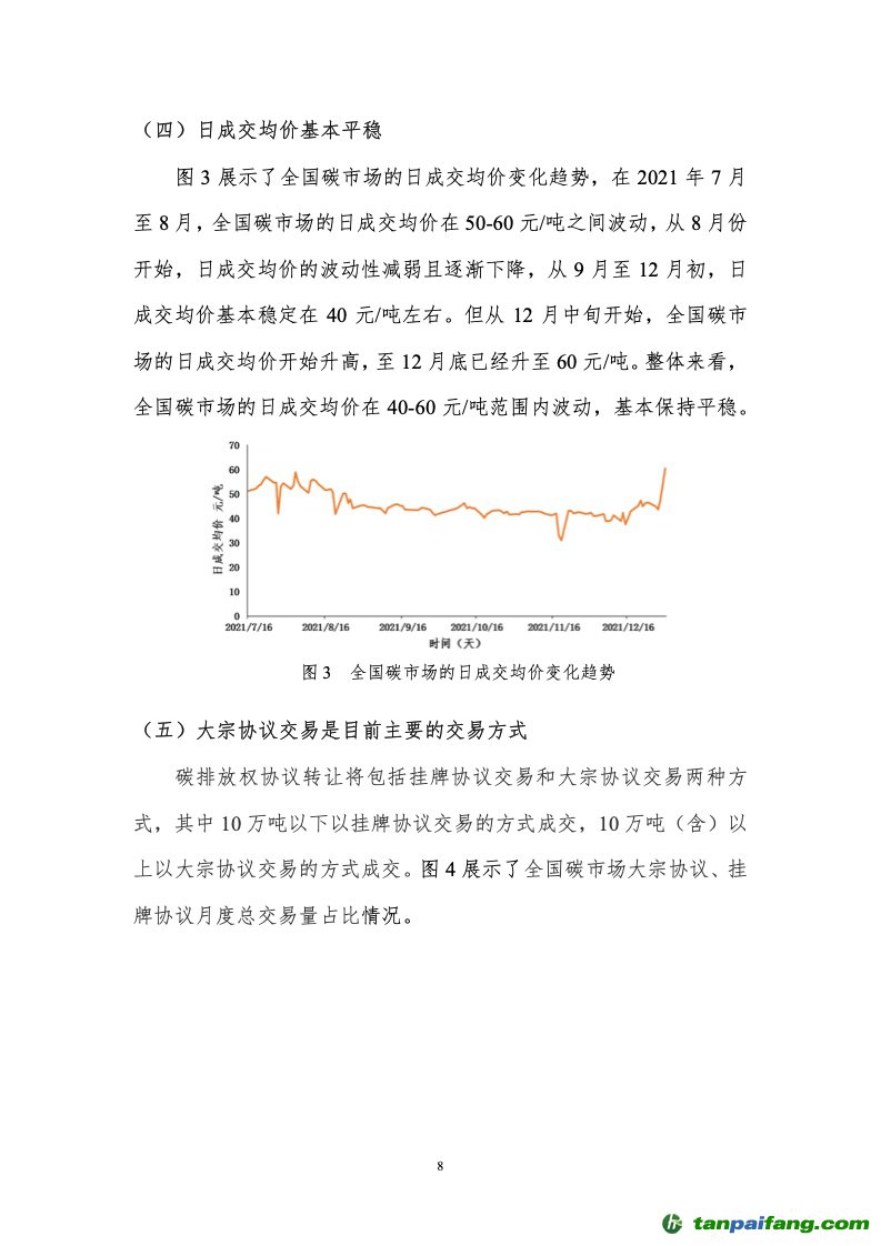 《中國(guó)碳市場(chǎng)回顧與展望(2022)》指出,目前全國(guó)碳市場(chǎng)整體運(yùn)行平穩(wěn),截至2021年年底,全國(guó)碳市場(chǎng)碳排放配額(CEA)累計(jì)成交量達(dá)1.79億噸,成交額達(dá)76.84億元。北京、天津、上海、重慶等七個(gè)試點(diǎn)碳市場(chǎng)碳排放配額累計(jì)成交量達(dá)4.83億噸,成交額達(dá)86.22億元。試點(diǎn)碳市場(chǎng)預(yù)計(jì)還將與全國(guó)碳市場(chǎng)持續(xù)并行一段時(shí)間,逐步向全國(guó)碳市場(chǎng)平穩(wěn)過(guò)渡。 本`文內(nèi).容.來(lái).自:中`國(guó)`碳`排*放*交*易^網(wǎng) t a npai fan g.com