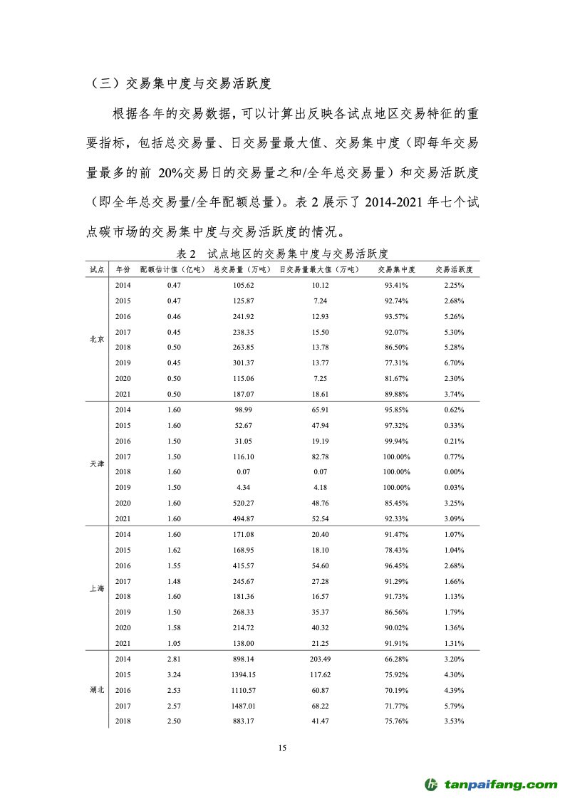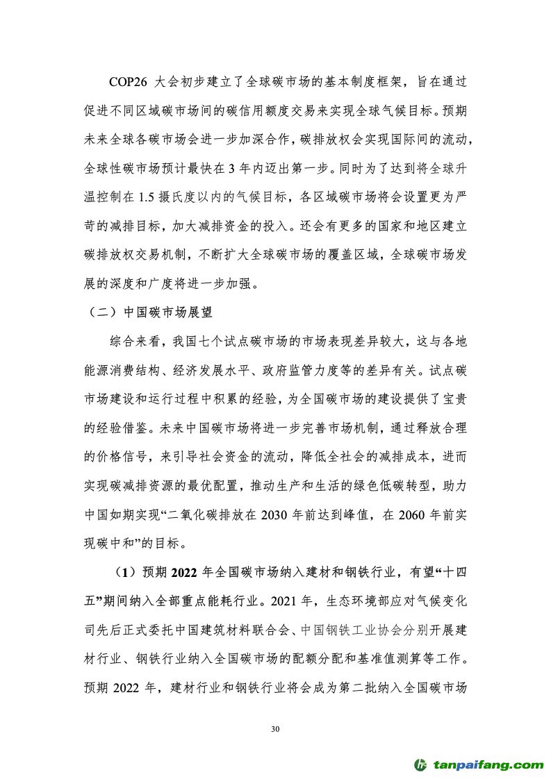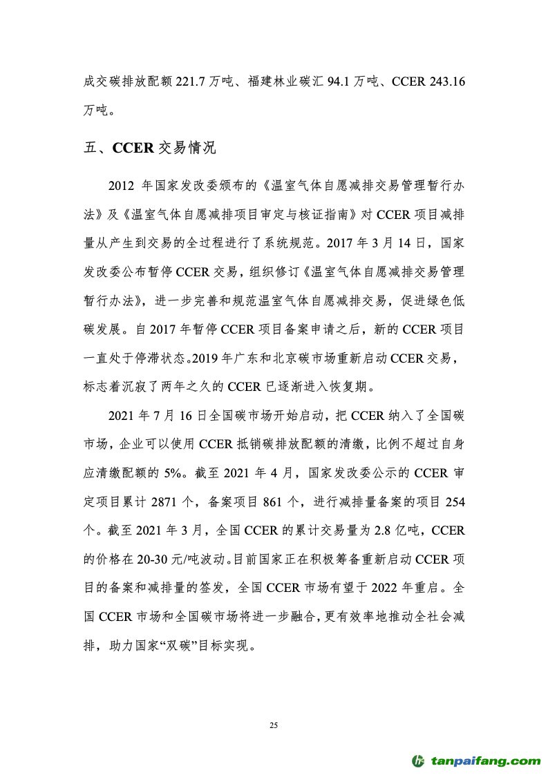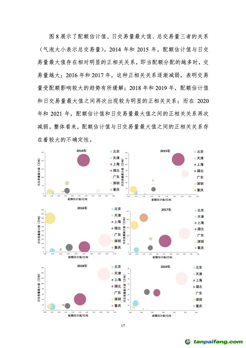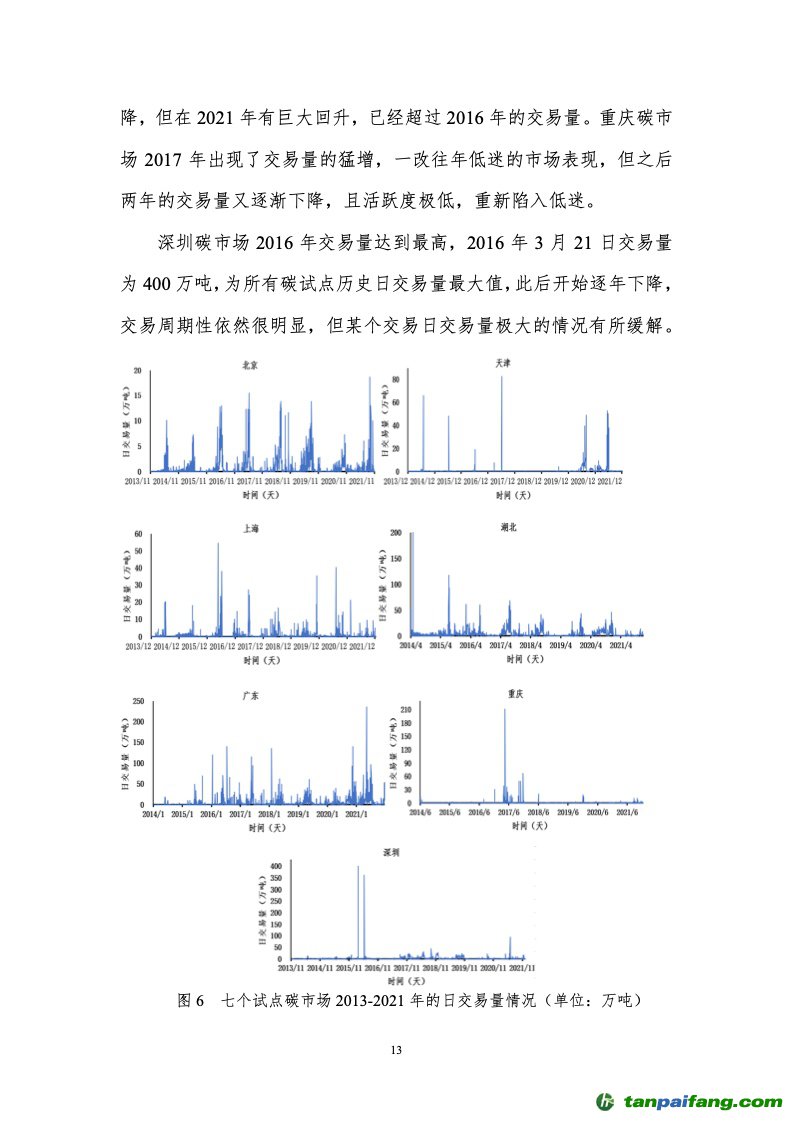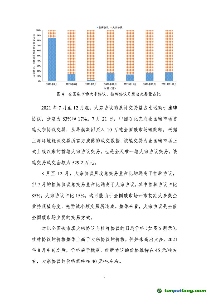 《中國(guó)碳市場(chǎng)回顧與展望(2022)》指出,目前全國(guó)碳市場(chǎng)整體運(yùn)行平穩(wěn),截至2021年年底,全國(guó)碳市場(chǎng)碳排放配額(CEA)累計(jì)成交量達(dá)1.79億噸,成交額達(dá)76.84億元。北京、天津、上海、重慶等七個(gè)試點(diǎn)碳市場(chǎng)碳排放配額累計(jì)成交量達(dá)4.83億噸,成交額達(dá)86.22億元。試點(diǎn)碳市場(chǎng)預(yù)計(jì)還將與全國(guó)碳市場(chǎng)持續(xù)并行一段時(shí)間,逐步向全國(guó)碳市場(chǎng)平穩(wěn)過(guò)渡。 本`文內(nèi).容.來(lái).自:中`國(guó)`碳`排*放*交*易^網(wǎng) t a npai fan g.com