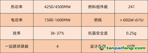 EPR是由西門子公司、法國電力集團、法瑪通公司聯(lián)合研發(fā)的歐洲第三代壓水堆,采取安全系統(tǒng)多樣性和增強冗余性理念,說白了就是為安全功能多設(shè)幾樣系統(tǒng),每樣系統(tǒng)多設(shè)置幾列一樣的,一般是4列。下表列出了EPR的主要指標,為了降低發(fā)電成本,其提高了電功率和熱工參數(shù),發(fā)電機組的熱效率高。全球首座投入商運的EPR機組2019年于我國臺山市正式并網(wǎng)發(fā)電。 內(nèi)/容/來/自:中-國/碳-排*放^交%易#網(wǎng)-tan p a i fang . com