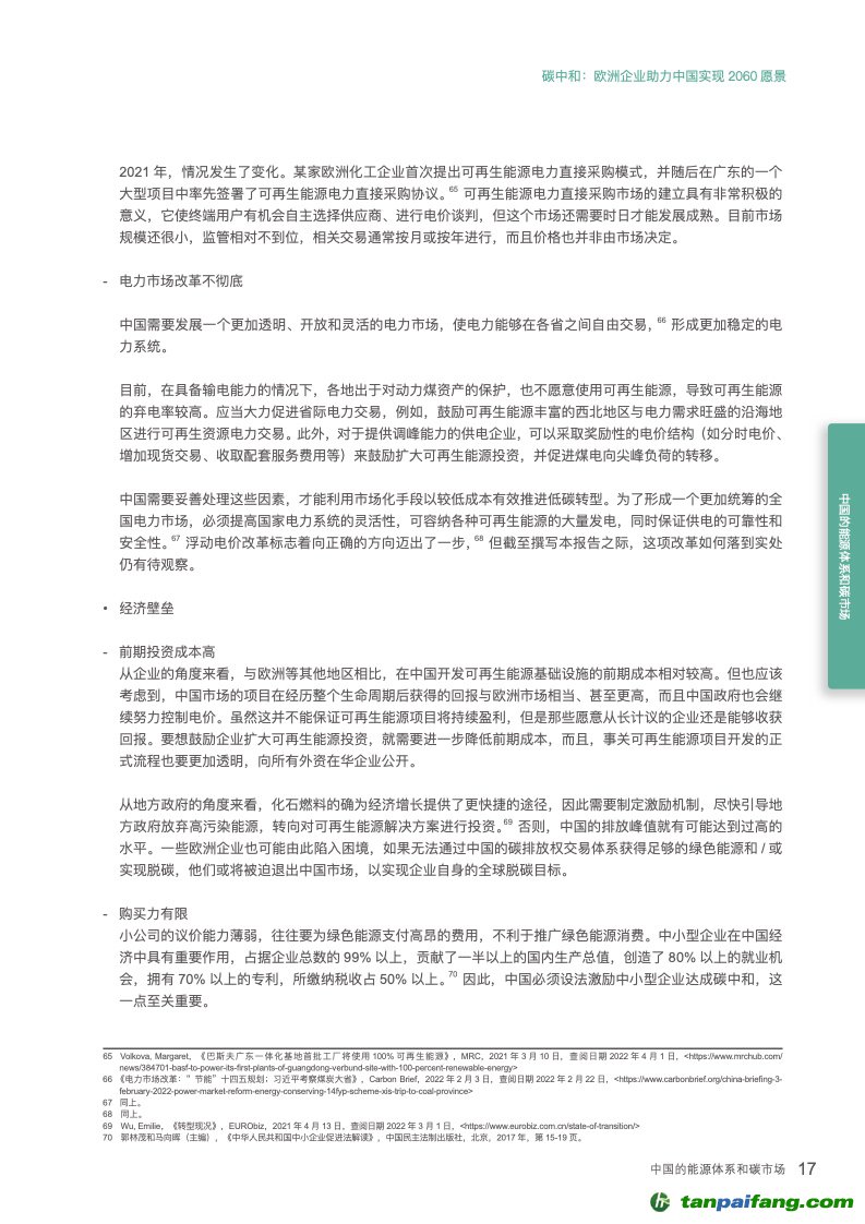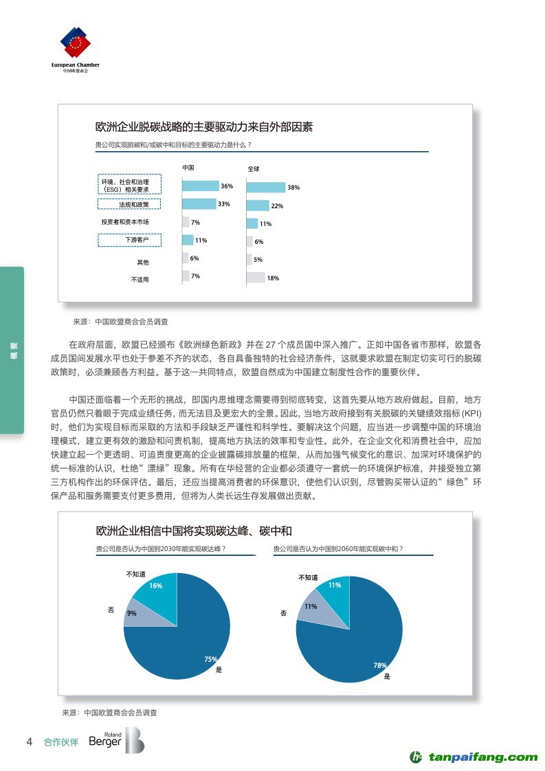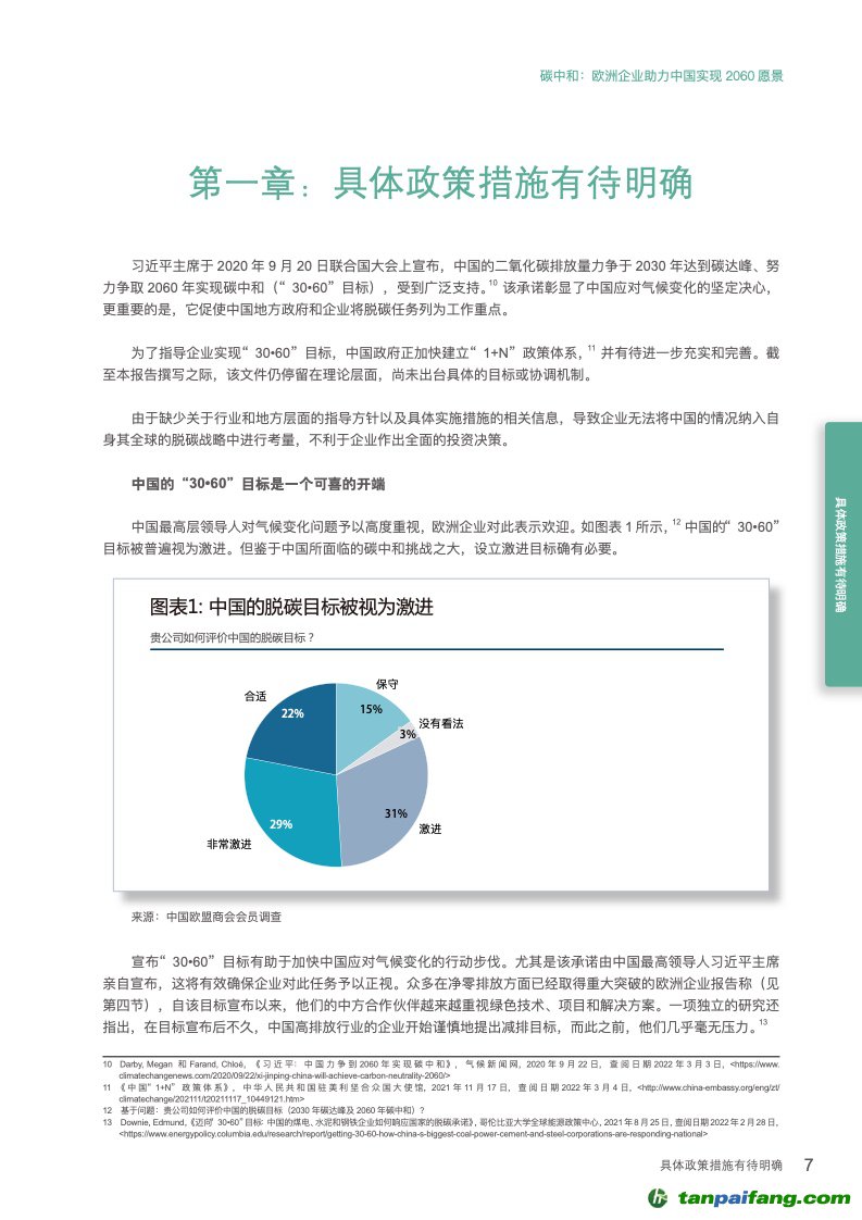 報告顯示,超過75%的在華歐洲企業(yè)認為中國能夠?qū)崿F(xiàn)2030年碳中和、2060年碳達峰的目標。60%的受訪企業(yè)認為中國的脫碳目標是激進的,但報告認為設(shè)立激進目標確有必要。 本`文@內(nèi)-容-來-自;中_國_碳排0放_交-易=網(wǎng) t an pa ifa ng . c om