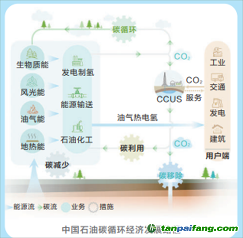 碳循環(huán)經(jīng)濟(jì)(Circular Carbon Economy)核心是2020年G20峰會(huì)所提出的“碳減少、碳利用、碳循環(huán)、碳移除 (4Rs)”四要素。中國(guó)石油將通過持續(xù)優(yōu)化公司的能源流與碳流,圍繞二氧化碳減量化、再利用和資源化實(shí)施流程再造,積極布局新能源、新材料、新產(chǎn)業(yè),打造二氧化碳捕集、利用與封存產(chǎn)業(yè)鏈,加快實(shí)現(xiàn)能源供應(yīng)清潔化和碳產(chǎn)業(yè)的規(guī)?;?,推動(dòng)綠色低碳轉(zhuǎn)型,全力向2050碳循環(huán)經(jīng)濟(jì)之路邁進(jìn)。