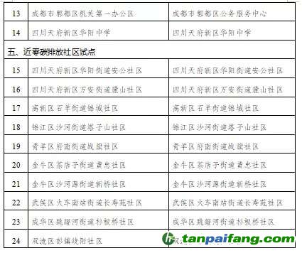 成都市近零碳排放區(qū)試點創(chuàng)建名單(第一批)