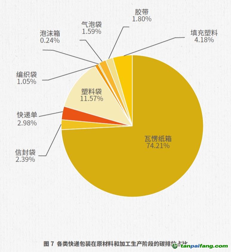 據(jù)介紹,我國快遞包裝全生命周期碳排放在較大程度上受到包裝在原材料生產(chǎn)和加工生產(chǎn)兩個階段碳排放的影響。