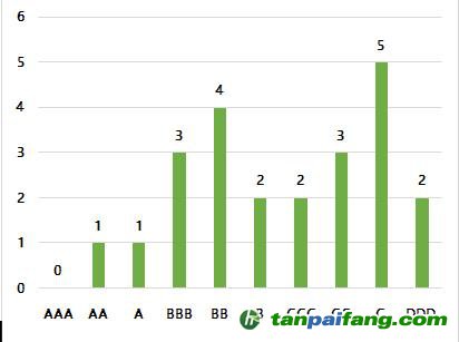 綠色產(chǎn)品、業(yè)績(jī)?cè)鲩L(zhǎng)4個(gè)一級(jí)指標(biāo),及30個(gè)二級(jí)指標(biāo),評(píng)級(jí)結(jié)果分九級(jí),按評(píng)分從高到低分別為:AAA、AA、A、BBB、BB、B、CCC、CC、C。