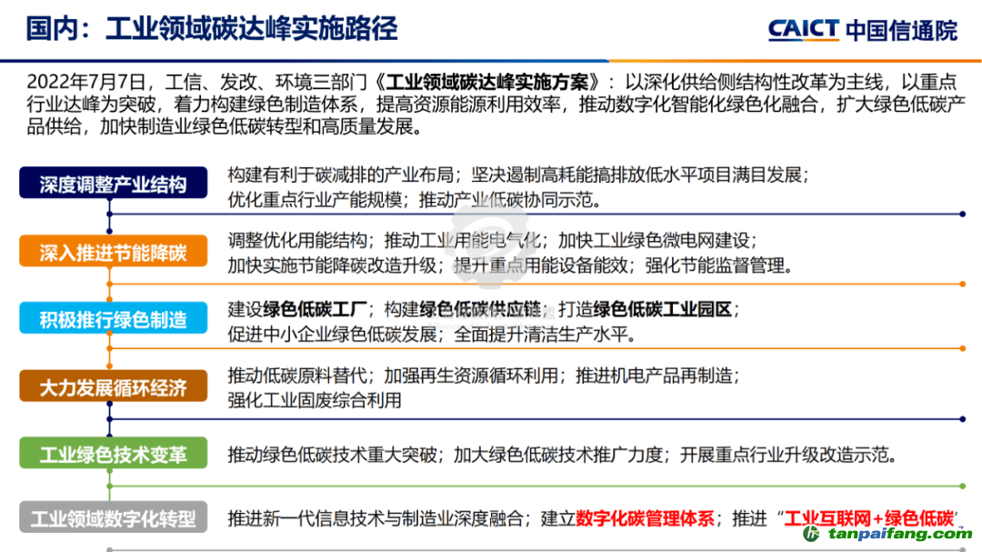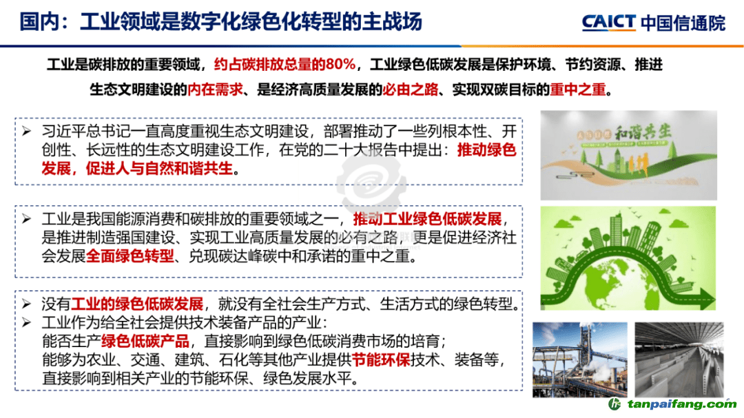 2.全球綠色低碳發(fā)展面臨巨大挑戰(zhàn)。新冠肺炎疫情和氣候變化風險交織,全球綠色經(jīng)濟轉(zhuǎn)型壓力加??;新發(fā)展階段需求變化顯著,高質(zhì)量綠色發(fā)展任務(wù)艱巨;降碳與發(fā)展的協(xié)同路徑還需探索,工業(yè)節(jié)能減排任重道遠;工業(yè)化和信息化融合水平參差不齊,數(shù)字化賦能綠色化基礎(chǔ)較弱。 內(nèi)/容/來/自:中-國/碳-排*放^交%易#網(wǎng)-tan p a i fang . com