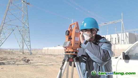 國網(wǎng)青海超高壓公司輸電專業(yè)人員對新建新能源配套線路開展桿塔傾斜及弧垂測量工作。攝影:陳力銀