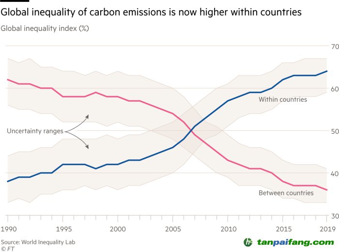 “目前,國家內部的碳不平等占全球排放不平等的大部分,約占總量的三分之二,與1990年相比幾乎完全逆轉。”