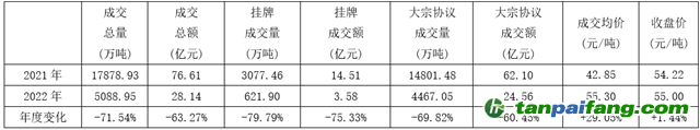 2022年CEA大宗協(xié)議成交量4467.05萬(wàn)噸,年成交額24.56億元,分別占CEA年成交總量和總額的87.78%和87.28%。連續(xù)兩年CEA的成交方式結(jié)構(gòu)中都呈現(xiàn)出協(xié)議成交為主的特點(diǎn)。 夲呅內(nèi)傛萊源?。骇鎲┨?排*放^鮫*易-網(wǎng) τā ńpāīfāńɡ.cōm
