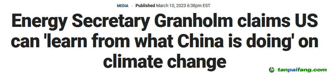 ?。ㄓ^察者網(wǎng)訊)綜合福克斯新聞、《新聞周刊》等美媒當(dāng)?shù)貢r間10日報道,美國能源部長詹妮弗·格蘭霍姆(Jennifer Granholm)周五在一場活動上贊揚(yáng)中國為減少氣候變化所做出的努力,呼吁美國可以學(xué)習(xí)中國目前在氣候問題上的一些應(yīng)對措施。