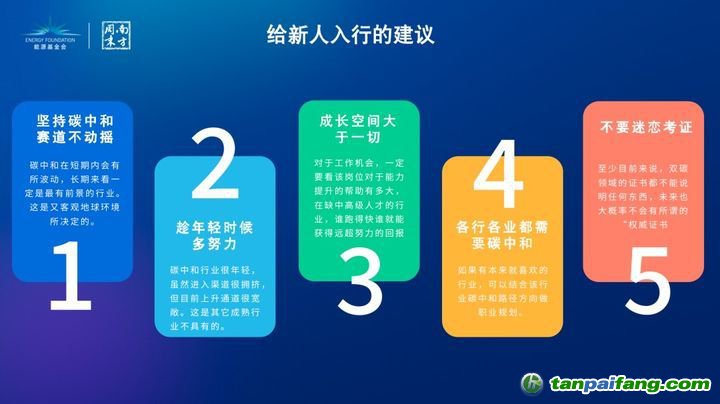 他覺得,首先要堅(jiān)持碳中和賽道不動搖,氣候變化客觀存在,不以人的意志為轉(zhuǎn)移,即便政策或輿論有波動,碳中和仍然是必須踐行的,有著長遠(yuǎn)的發(fā)展前景。而年輕人投身“雙碳”行業(yè)既沒必要迷戀考證,也不應(yīng)該死盯著狹義的“碳中和”崗位——如他們前面所講,各行各業(yè)都需要碳中和,而具備交叉學(xué)科能力的復(fù)合人才,才是最吃香的。