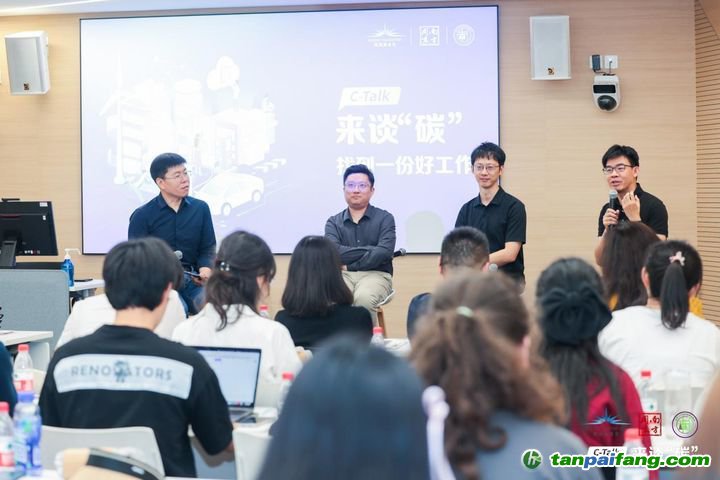 這是能源基金會、南方周末、清華大學(xué)學(xué)生碳中和研究協(xié)會主辦,清華大學(xué)環(huán)境學(xué)院研究生會協(xié)辦的“來談碳·找到一份好工作”C-Talk分享會。正在講話的,是《碳中和時(shí)代》的作者汪軍。