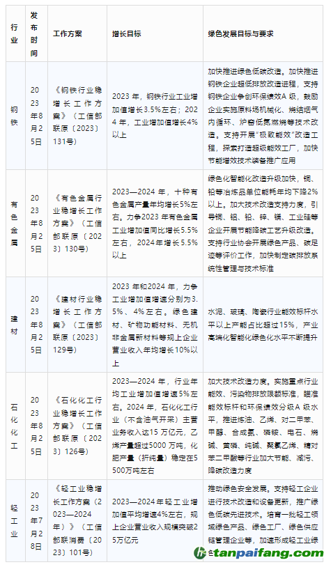 8月以來,鋼鐵、有色金屬、建材、石化化工、輕工等工業(yè)領(lǐng)域多行業(yè)穩(wěn)增長工作方案陸續(xù)出臺(tái),統(tǒng)籌推進(jìn)工業(yè)經(jīng)濟(jì)穩(wěn)增長和高質(zhì)量發(fā)展,其中,綠色低碳改造是推進(jìn)各行業(yè)高質(zhì)量增長的重要內(nèi)容(見表1),如鋼鐵行業(yè)穩(wěn)增長方案提出加快推進(jìn)鋼鐵企業(yè)超低排放改造進(jìn)程,支持開展“極致能效”改造工程,探索打造超級(jí)能效工廠;有色金屬行業(yè)穩(wěn)增長方案提出加大技術(shù)改造支持力度,銅、鉛等冶煉品單位能耗年均下降2%以上;建材行業(yè)穩(wěn)增長工作方案提出2023~2024年,水泥、玻璃、陶瓷行業(yè)能效標(biāo)桿水平以上產(chǎn)能占比超過15%。系列政策的出臺(tái)將帶動(dòng)工業(yè)領(lǐng)域綠色低碳節(jié)能改造需求的提升,8月GPI調(diào)研結(jié)果顯示,節(jié)能技術(shù)推廣服務(wù)行業(yè)新訂單指數(shù)較上月大幅提升了10.7個(gè)百分點(diǎn),行業(yè)景氣也較上月大幅提升了8.8個(gè)百分點(diǎn)(見圖3)。 禸嫆@唻洎:狆國湠棑倣茭昜蛧 τāńpāīfāńɡ.cōm