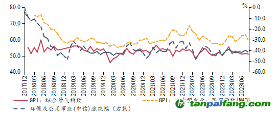8月《環(huán)境基礎(chǔ)設(shè)施建設(shè)水平提升行動(dòng)(2023—2025年)》《關(guān)于補(bǔ)齊公共衛(wèi)生環(huán)境設(shè)施短板 開展城鄉(xiāng)環(huán)境衛(wèi)生清理整治的通知》等政策陸續(xù)出臺(tái),著力提升包括生活污水處置、生活垃圾處置、固廢危廢處置等在內(nèi)的城鄉(xiāng)環(huán)境基礎(chǔ)設(shè)施建設(shè)水平,推動(dòng)相關(guān)產(chǎn)業(yè)景氣提升。8月GPI調(diào)研結(jié)果顯示,水污染治理和環(huán)境衛(wèi)生管理行業(yè)景氣指數(shù)分別較上月提升了4.7和4.6個(gè)百分點(diǎn)(見圖3)。 本*文@內(nèi)-容-來-自;中_國_碳^排-放*交-易^網(wǎng) t an pa i fa ng . c om
