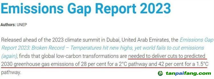 聯(lián)合國(guó)環(huán)境規(guī)劃署最新發(fā)布的《2023年排放差距報(bào)告》強(qiáng)調(diào),要想實(shí)現(xiàn)《巴黎協(xié)定》的目標(biāo),即在本世紀(jì)內(nèi)將全球升溫幅度控制在2攝氏度或者更理想的1.5攝氏度以?xún)?nèi),全球碳排放量到2030年時(shí)必須下降28%-42%。