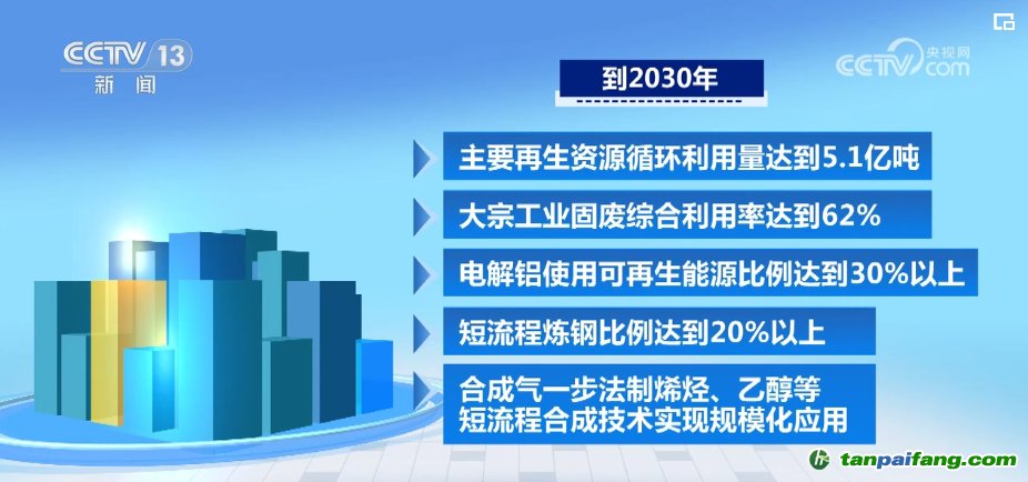 《指導(dǎo)意見》提出,到2030年,主要再生資源循環(huán)利用量達(dá)到5.1億噸,大宗工業(yè)固廢綜合利用率達(dá)到62%,電解鋁使用可再生能源比例達(dá)到30%以上,短流程煉鋼比例達(dá)到20%以上,合成氣一步法制烯烴、乙醇等短流程合成技術(shù)實(shí)現(xiàn)規(guī)模化應(yīng)用。