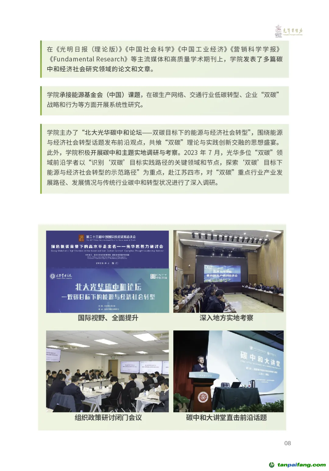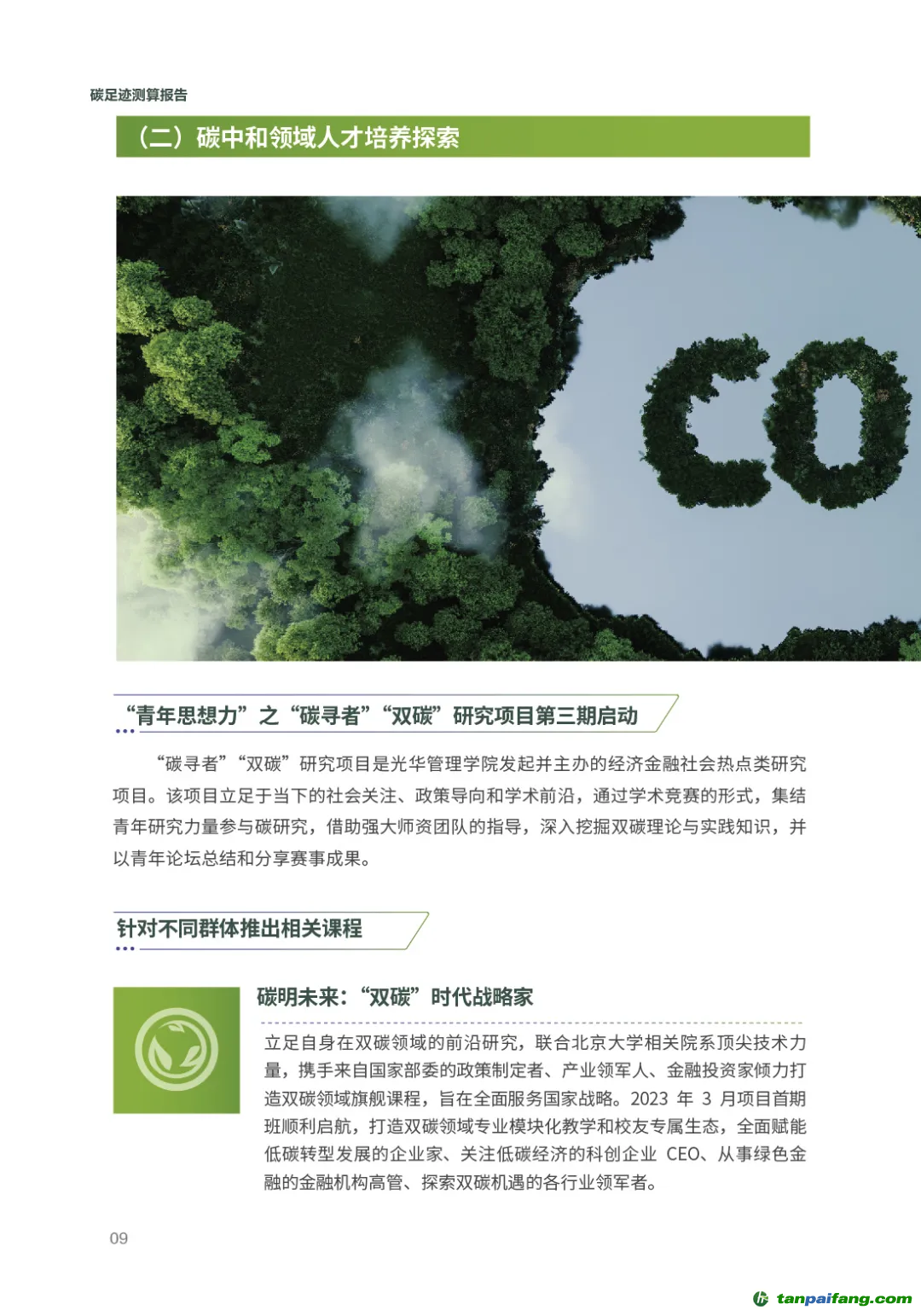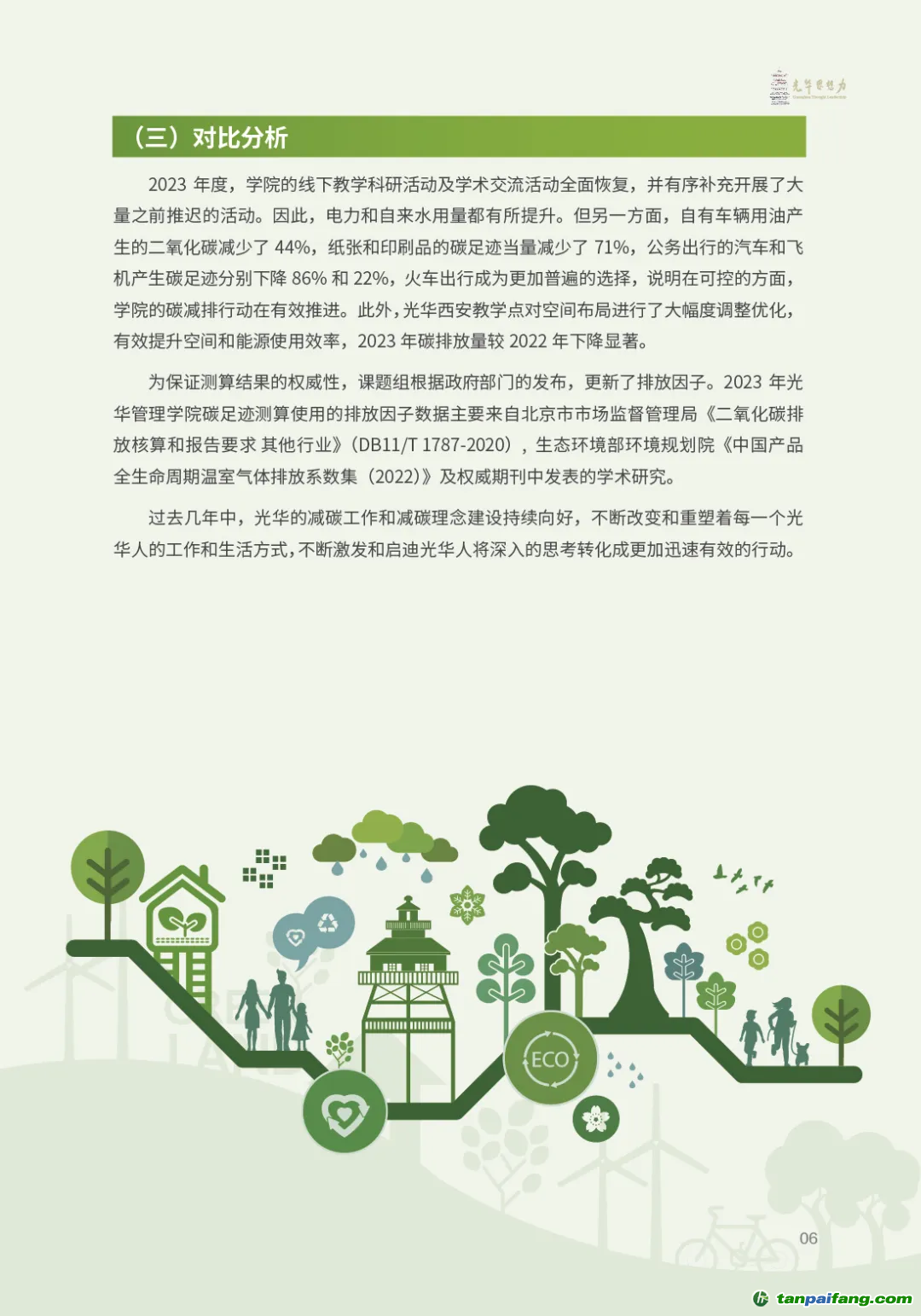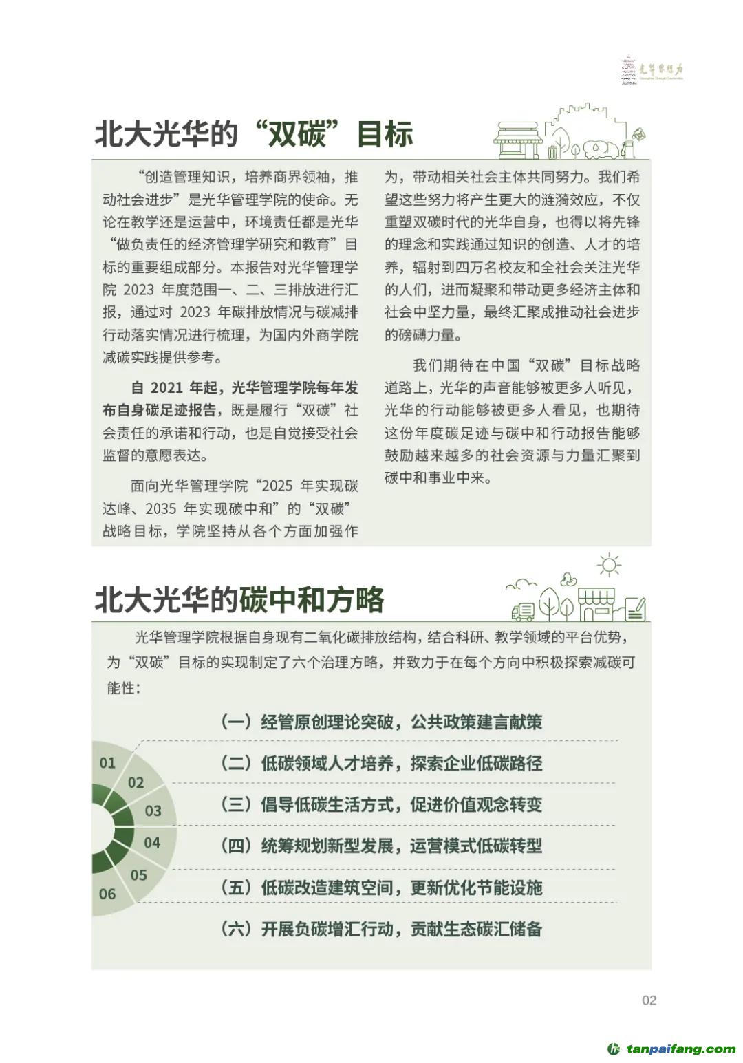 《北京大學(xué)光華管理學(xué)院碳足跡與碳中和行動報告2023》是光華管理學(xué)院自2021年以來的第三次發(fā)布自身碳足跡相關(guān)報告。以下為報告全文: 內(nèi).容.來.自:中`國`碳#排*放*交*易^網(wǎng) t a np ai f an g.com