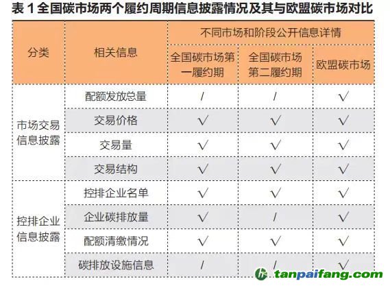 納入碳交易體系的碳排放相關(guān)數(shù)據(jù)的披露和公開(kāi),更好接受市場(chǎng)參與各方的審視,是有效提升碳市場(chǎng)治理水平的關(guān)鍵所在。歐盟碳市場(chǎng)經(jīng)過(guò)二十年的發(fā)展,建立了一整套的信息披露和監(jiān)管制度。參與交易的企業(yè)需要定期向所在國(guó)家的環(huán)境部門(mén)或者監(jiān)管機(jī)構(gòu)提交其碳排放報(bào)告,報(bào)告中需包含企業(yè)的碳排放量、減排措施、配額清繳情況等信息,并經(jīng)過(guò)第三方核查機(jī)構(gòu)的核查,從2005年迄今近20年,歐盟一萬(wàn)多個(gè)排放設(shè)施碳排放監(jiān)測(cè)、報(bào)告和核查(MRV)及配額的相關(guān)數(shù)據(jù),主管部門(mén)各類(lèi)政策規(guī)章及其重要制定和決策過(guò)程,都可以從歐盟碳市場(chǎng)官方網(wǎng)站上公開(kāi)可查可得。高質(zhì)量、大尺度、連續(xù)性不斷堅(jiān)持披露近20年,是歐盟碳市場(chǎng)在全球范圍內(nèi)碳交易體系治理水平相對(duì)領(lǐng)先的一個(gè)重要基礎(chǔ)。下表1是全國(guó)碳市場(chǎng)兩個(gè)履約周期和歐盟碳市場(chǎng)在部分市場(chǎng)和排放企業(yè)基礎(chǔ)信息披露和公開(kāi)方面的簡(jiǎn)單對(duì)比情況。 本*文@內(nèi)-容-來(lái)-自;中_國(guó)_碳^排-放*交-易^網(wǎng) t an pa i fa ng . c om