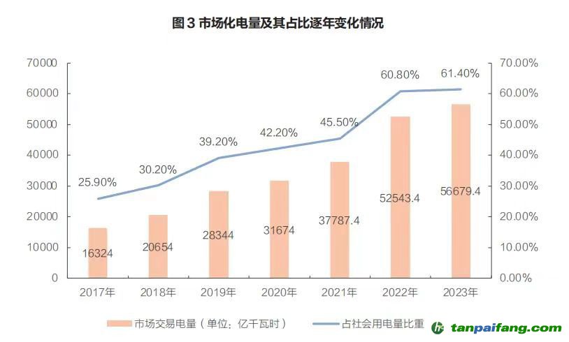 隨著2015年電力體制改革重新啟動(dòng)以后,中國(guó)電力市場(chǎng)市場(chǎng)化交易電量的穩(wěn)步增長(zhǎng),市場(chǎng)化交易電量的比重逐漸從2015年當(dāng)年個(gè)位數(shù)的占比增長(zhǎng)到2023年年底的61.4%,增長(zhǎng)了近10倍左右(如下圖3所示),未來(lái)還有望進(jìn)一步提高。因此,在這一大的前提發(fā)生巨大變化的情況下,未來(lái)繼續(xù)把發(fā)電行業(yè)以外擬擴(kuò)容行業(yè)的電力消費(fèi)產(chǎn)生的間接排放納入碳市場(chǎng)的前提和邏輯也將發(fā)生巨大的變化,因此,有必要在評(píng)估擬擴(kuò)容行業(yè)的碳排放核算及配額分配方法時(shí),慎重考慮這部分間接排放的納入問(wèn)題。 本*文@內(nèi)-容-來(lái)-自;中_國(guó)_碳^排-放*交-易^網(wǎng) t an pa i fa ng . c om