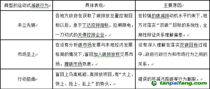 表2 我國“運動式減碳”的具體表現(xiàn)形式及主要原因 內(nèi)-容-來-自;中_國_碳_0排放¥交-易=網(wǎng) t an pa i fa ng . c om