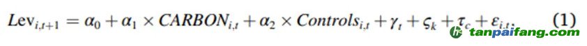 為檢驗碳政策風險與企業(yè)財務杠桿之間的實證關聯(lián),估計以下模型: 內/容/來/自:中-國-碳-排-放*交…易-網(wǎng)-tan pai fang . com