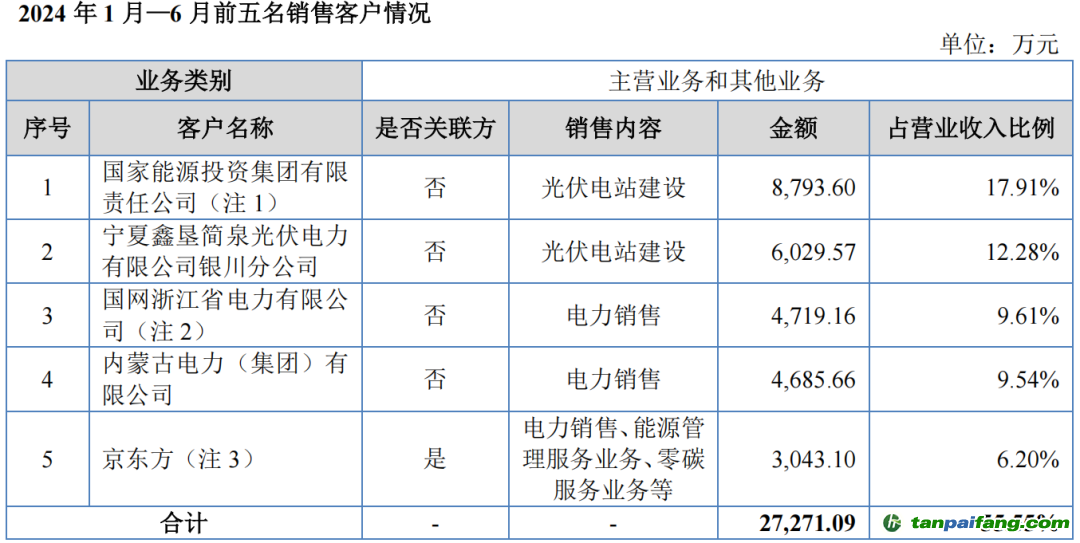 十、報(bào)告期內(nèi)前五名客戶情況 內(nèi).容.來(lái).自:中`國(guó)`碳#排*放*交*易^網(wǎng) t a np ai f an g.com