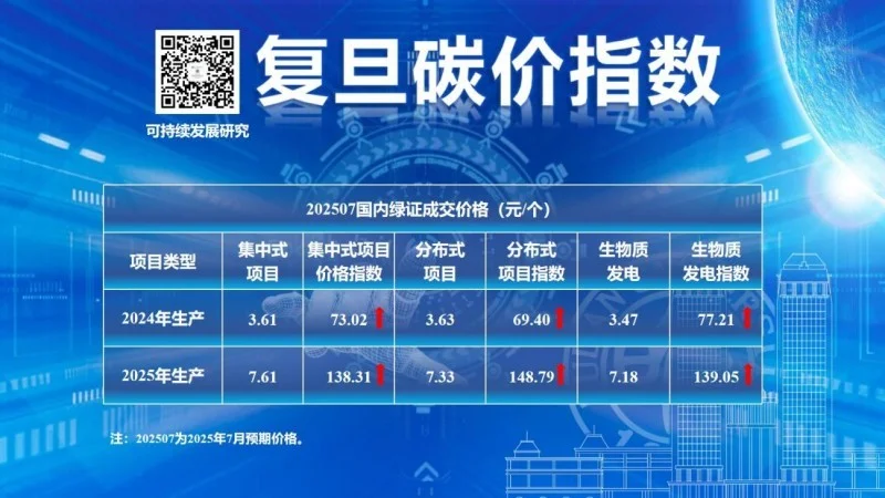 6月29日,復旦大學可持續(xù)發(fā)展研究中心(以下簡稱“研究中心”)公布了2025年7月復旦碳價指數(shù)結(jié)果。此次公布了2025年7月全國碳排放配額(簡稱CEA)價格指數(shù)、2025年12月全國CEA價格指數(shù)、2025年7月全國CCER價格指數(shù)以及2025年7月中國綠色電力證書GEC價格指數(shù)。
