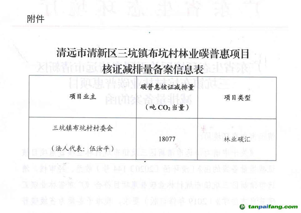 廣東省生態(tài)環(huán)境廳關(guān)于同意清遠(yuǎn)市清新區(qū)三坑鎮(zhèn)布坑村林業(yè)碳普惠項(xiàng)目減排量備案的函 本*文`內(nèi)/容/來/自:中-國-碳^排-放“交|易^網(wǎng)-tan pai fang . c o m
